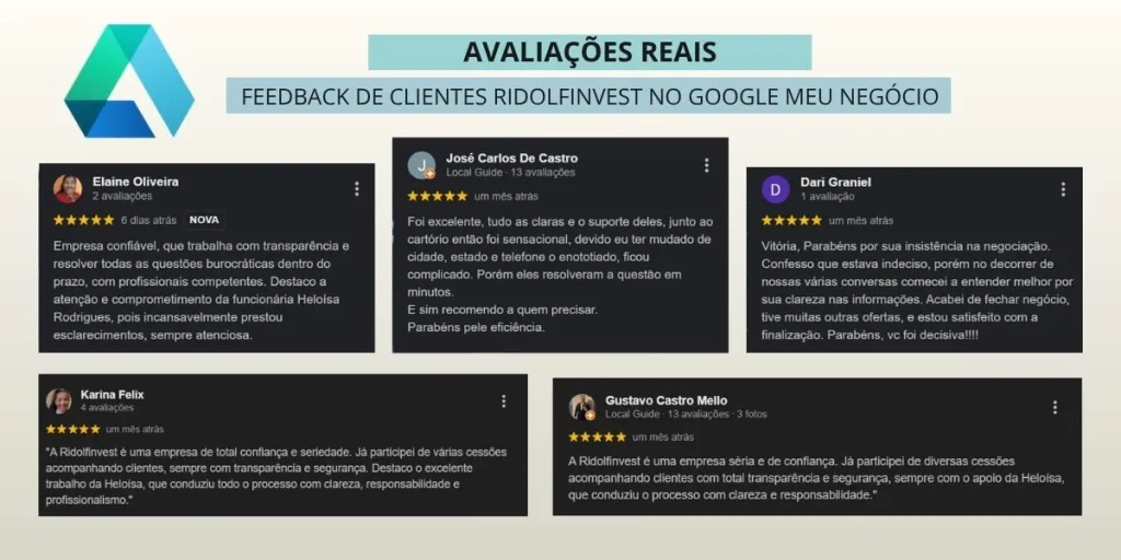 A formalização da cessão na Ridolfinvest ocorre com máximo cuidado para garantir segurança jurídica. Afinal, a empresa indica o cartório mais próximo da residência do cliente, de modo a facilitar o processo e minimizando deslocamentos desnecessários.